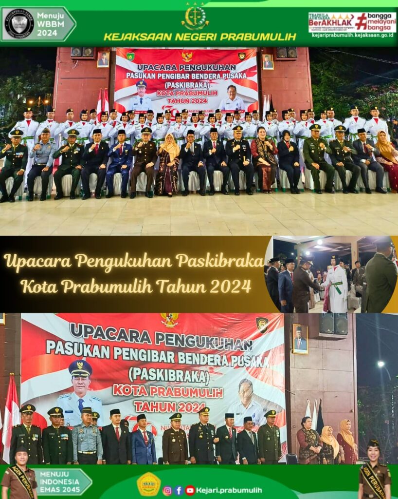 Bertempat di Gedung Pendopoan Rumah Dinas Walikota Prabumulih, Kepala Seksi Pengelolaan Barang Bukti dan Barang Rampasan Bapak Faisyal Basni, S.H, M.H menghadiri kegiatan Upacara Pengukuhan Pasukan Pengibar Bendera Pusaka (Paskibra) Kota Prabumulih Tahun 2024.