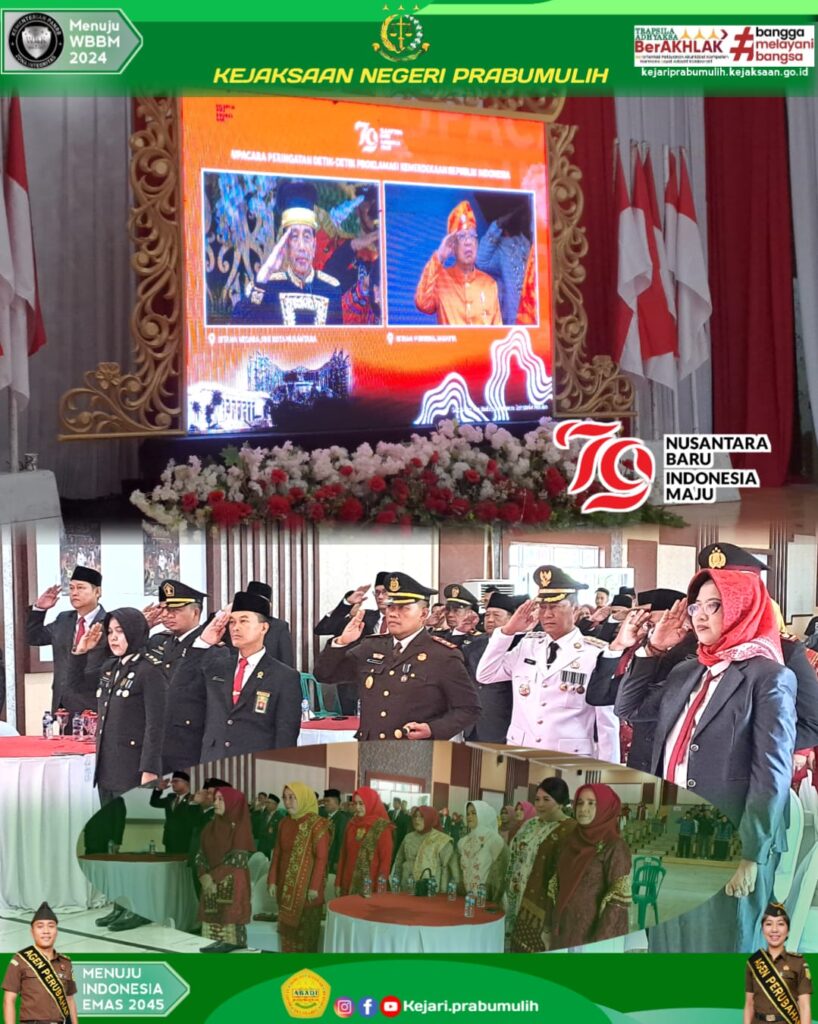 Bertempat di Gedung Kesenian Rumah Dinas Walikota Prabumulih, Kepala Kejaksaan Negeri Prabumulih Bapak Khristiya Lutfiasandhi,S.H.,M.H bersama PJ.Walikota Prabumulih Bapak H.Elman ST MM beserta seluruh Unsur Forkopimda Kota Prabumulih Menyaksikan Upacara Pengibaran Bendera Merah Putih Pertama dalam Rangka HUT Kemerdekaan RI Ke-79 Tahun 2024 di Istana Garuda IKN Secara Virtual.