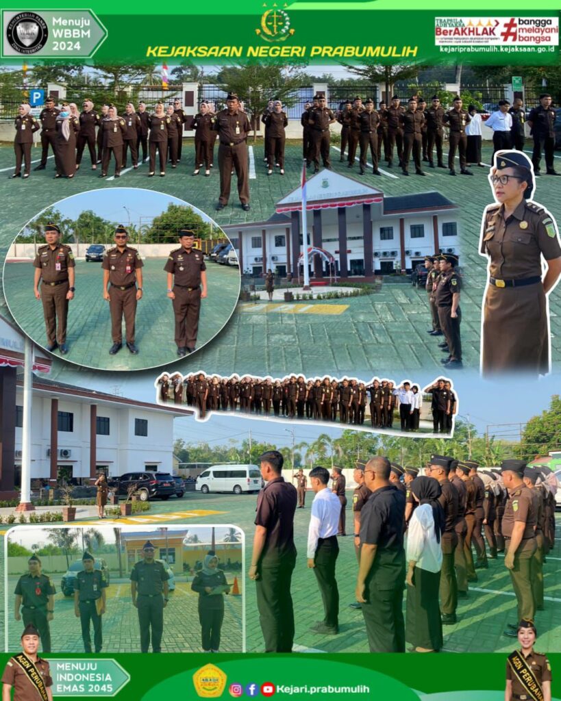 Hari Senin 19 Agustus 2024 bertempat di Halaman Kantor Kejaksaan Negeri Prabumulih, Kepala Seksi Perdata dan Tata Usaha Negara Ibu Erwina Mea Dimatnusa S.H., M.H. memimpin Apel Rutin Senin Pagi yang diikuti oleh para Kasi, Pegawai dan PPNPN di lingkungan Kejaksaan Negeri Prabumulih.