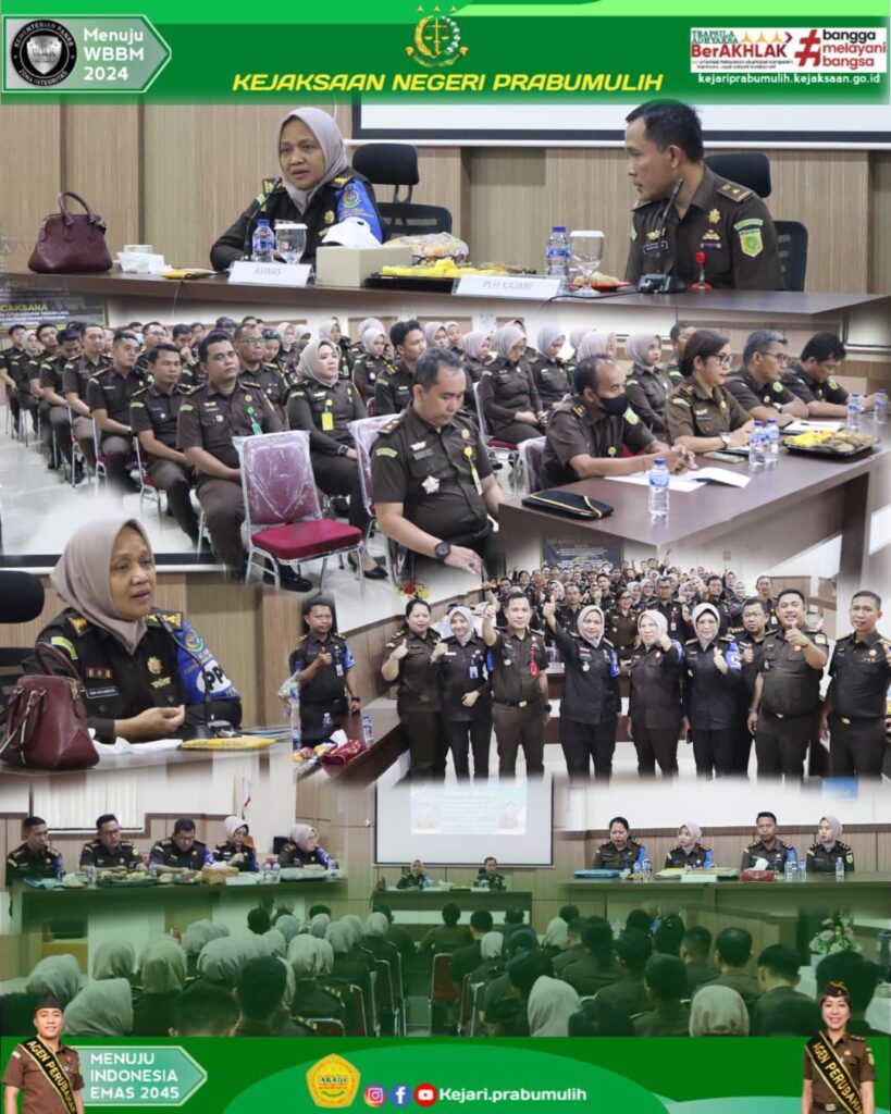 Hari Rabu tanggal 21 Agustus 2024 Pukul 15.00 WIB bertempat di Kejaksaan Negeri Prabumulih telah dilaksanakan Inspeksi Pemantauan tahun 2024 yang dipimpin oleh Asisten Pengawasan Kejaksaan Tinggi Sumatera Selatan Ibu Dr. Diah Ayu Hartati L.I.A, S.H., M.Hum. beserta Jajaran.