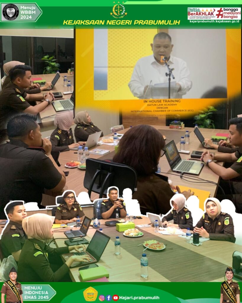 Kepala Kejaksaan Negeri Prabumulih Khristiya Lutfiasandhi, S.H., M.H. didampingi Kepala Seksi Perdata dan Tata Usaha Negara, Erwina Mea Dimatnusa, S.H., M.H., para Kepala Subseksi Bidang Perdata dan Tata Usaha Negara serta para Jaksa Pengacara Negara mengikuti In House Training (IHT) Bidang Perdata dan Tata Usaha Negara secara daring melalui aplikasi zoom meeting.
