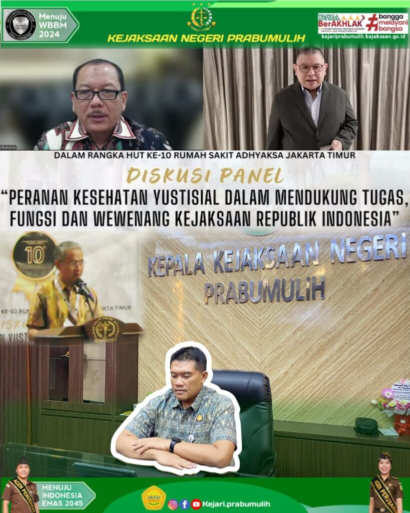 Hari Jumat tanggal 20 September 2024 bertempat di Ruang Kerja Kepala Kejaksaan Negeri Prabumulih, Kepala Kejaksaan Negeri Prabumulih bapak Khristiya Lutfiasandhi, S.H., M.H. Mengikuti Diskusi Panel “Peranan Kesehatan Yustisial dalam mendukung tugas, fungsi, dan wewenang Kejaksaan Republik Indonesia” secara virtual.