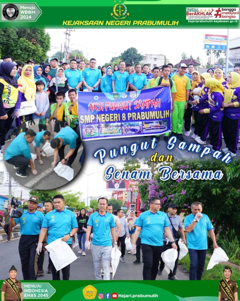 Kepala Kejaksaan Negeri Prabumulih Bapak Khristiya Lutfiasandhi, S.H.,M.H didampingi Kasubag Pembinaan dan Kepala Subseksi serta pegawai pada Kejaksaan Negeri Prabumulih mengikuti kegiatan Pungut Sampah dan Senam Bersama dalam Rangka HUT Kota Prabumulih yang ke-23.