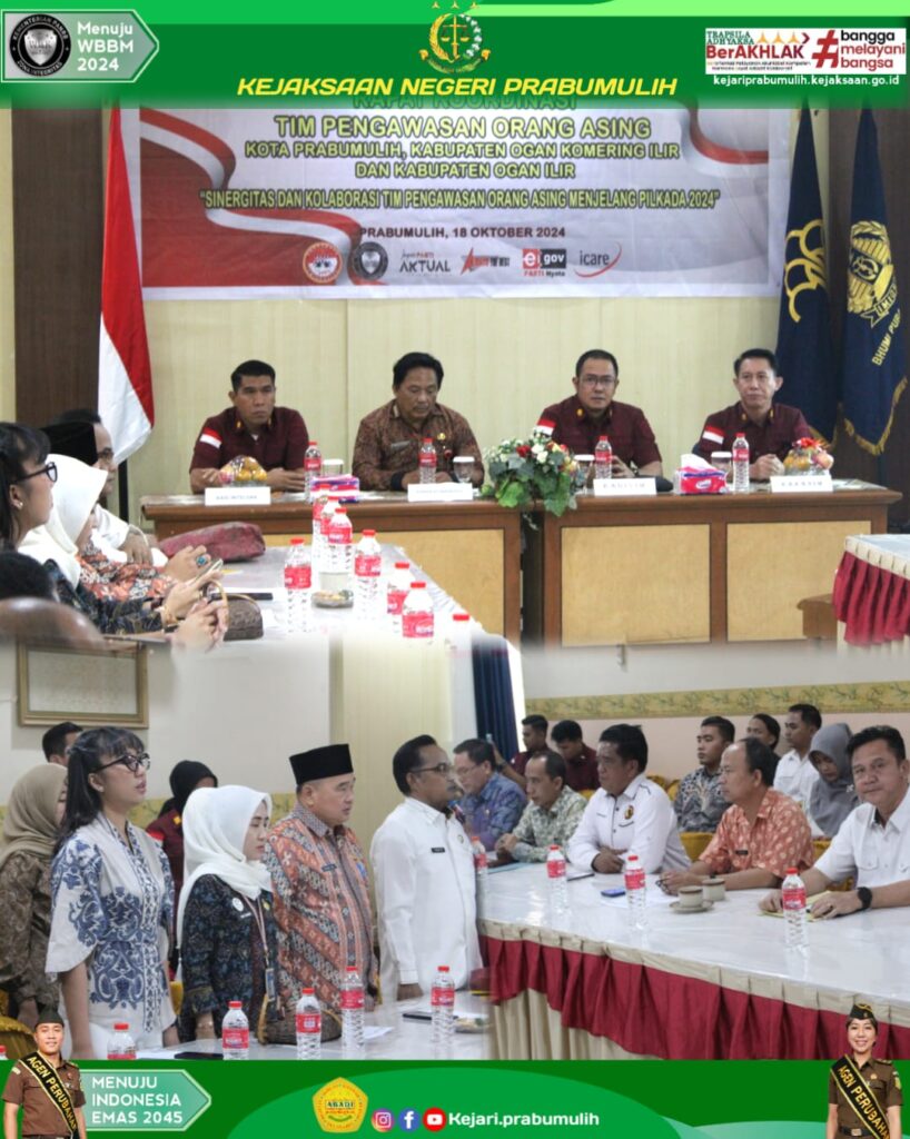 Bertempat di Hotel Gran Nikita Kota Prabumulih, Kepala Kejaksaan Negeri Prabumulih Bapak Khristiya Lutfiasandhi,S.H.,M.H yang diwakili Plh.Kasubsi A bidang Intelijen Ibu Intan Magdalena, S.H mengikuti Rapat Koordinasi Tim Pengawasan Orang Asing Kota Prabumulih, Kabupaten Ogan Komering Ilir, dan Kabupaten Ogan Ilir yang mengusung tema “Sinergitas Kolaborasi Tim Pengawasan Orang Asing Menjelang Pilkada 2024”.