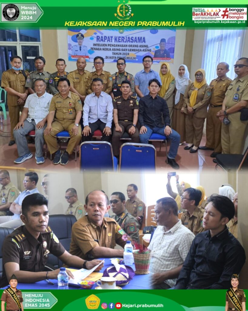 Bertempat diruang Rapat Kesbangpol Kota Prabumulih, Kepala Seksi Intelijen Bapak M.Ridho Saputra, S.H.,MH yg diwakilih Jaksa Fungsional pada bidang Intelijen Bapak Rozza Syahputra,S.H menghadiri Rapat Kerjasama Intelijem Pengawasan Orang Asing,Tenaga Kerja Asing dan Lembaga Asiny Tahun 2024 di Kota Prabumulih yang dilaksanakan oleh Kesbangpol Kota Prabumulih.