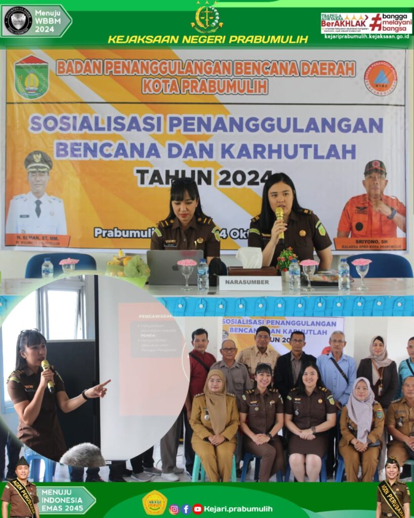 Bertempat Aula Kecamatan Prabumulih Selatan, Kasubsi Ekeupps Ibu Meylda Pegasari,S.H dan Plh.Kasubsi A Ibu Intan Magdalena, S.H menjadi Narasumber pada kegiatan Sosialisasi Penanggulangan Bencana dan Karhutla Tahun 2024 yang dilaksanakan Badan Penanggulangan Bencana Daerah (BPBD) Kota Prabumulih.