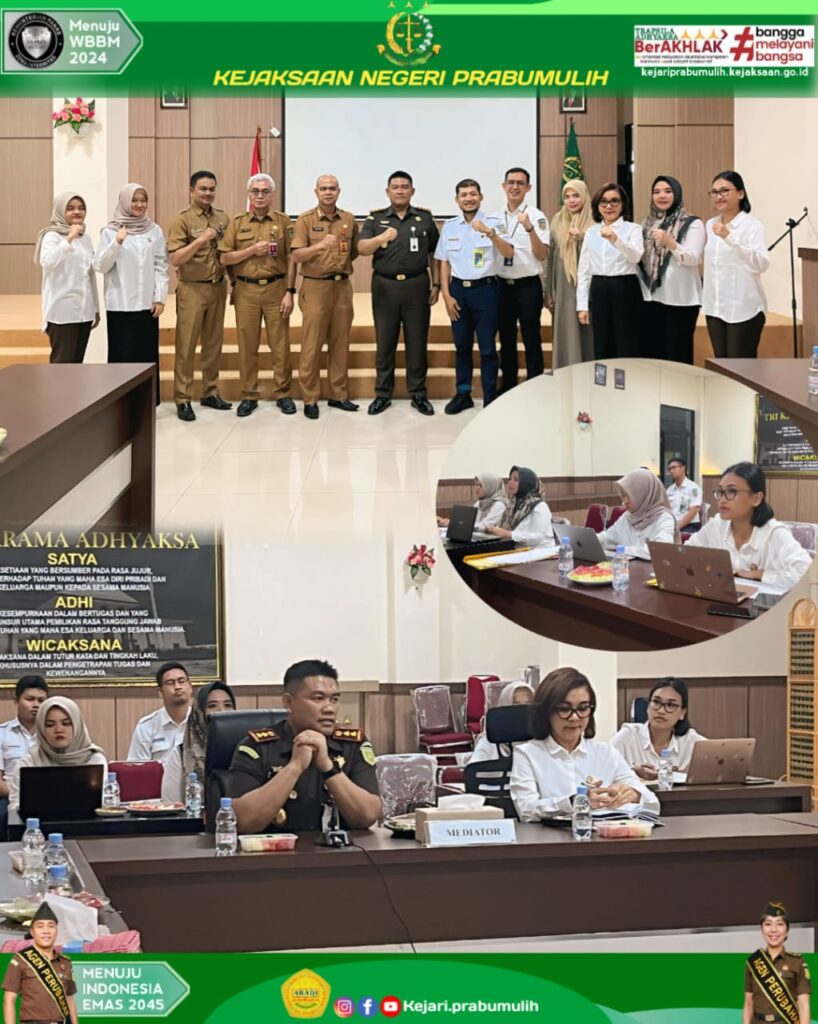 Bertempat di Aula Kantor Kejaksaan Negeri Prabumulih Kepala Kejaksaan Negeri Prabumulih Bapak Khristiya Lutfiasandhi, S.H., M.H bersama Kepala Seksi Perdata dan Tata Usaha Negara Ibu Erwina Mea Dimatnusa, S.H., M.H dan Jaksa Pengacara pada Kejaksaan Negeri Prabumulih melakukan Tindakan Hukum Lain (Mediasi) terkait dengan Permasalahan Batas dan Klaim Kepemilikan Aset Tanah Antara BPKAD Kota Prabumulih dan PT.Kai Persero.
