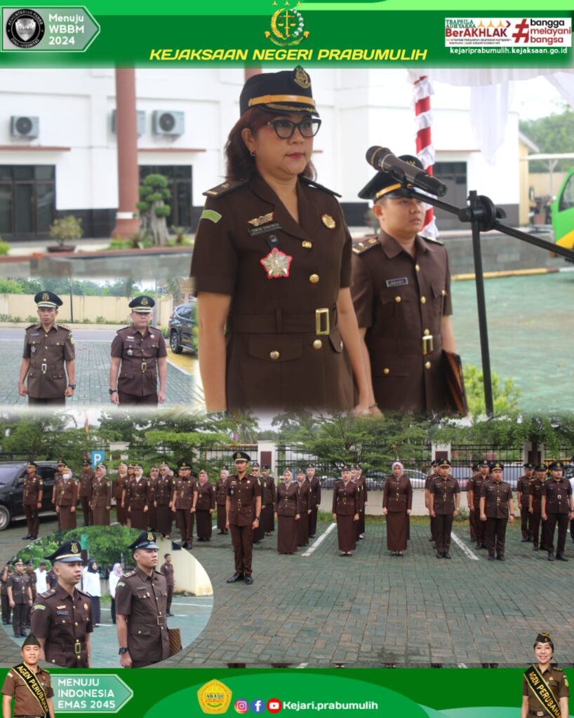 Bertempat dihalaman Kantor Kejaksaan Negeri Prabumulih, Kepala Seksi Perdata dan Tata Usaha Negara Ibu Erwina Mea Dimatnusa, S.H.,M.H menjadi Inspektur Upacara dalam Upacara Peringatan Hari Pahlawan Tahun 2024 yang diikuti oleh seluruh Pegawai pada Kejaksaan Negeri Prabumulih.