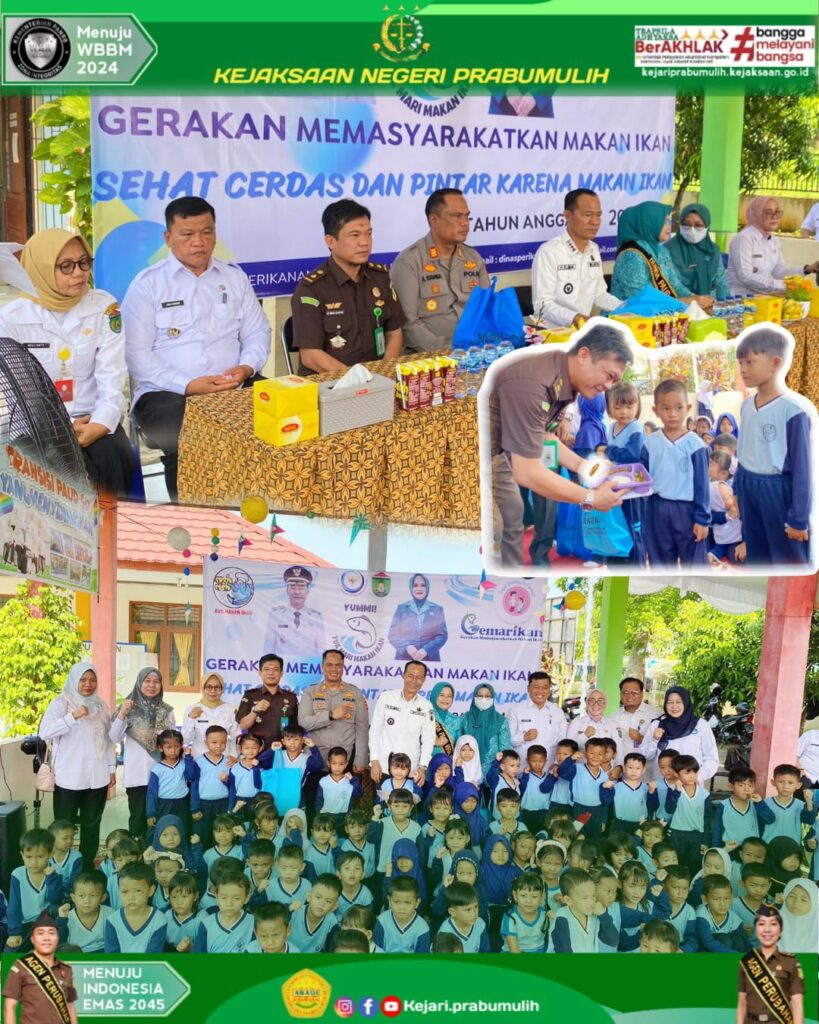 Hari Rabu tanggal 13 November 2024 pukul 08.30 WIB bertempat di TK/PAUD Pembina Negeri Prabumulih Kelurahan Gunung Ibul Barat Kota Prabumulih, Kepala Kejaksaan Negeri Prabumulih bapak Khristiya Lutfiasandhi, S.H., M.H. yang diwakili oleh Kepala Seksi Intelijen Kejaksaan Negeri Prabumulih bapak M. Ridho Saputra, S.H., M.H. Mengikuti kegiatan Gerakan Memasyarakatkan Makan Ikan dengan tema ‘Sehat Cerdas dan Pintar karena makan Ikan’.