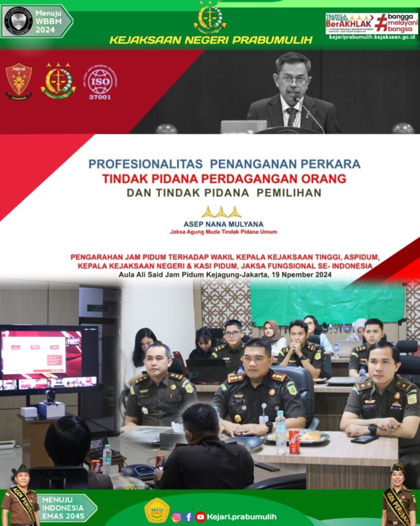 Bahwa Pengarahan tersebut diikuti oleh Wakil Kepala Kejaksaan Tinggi, Asisten Bidang Tindak Pidana Umum, Kepala Kejaksaan Negeri, Kepala Seksi Tindak Pidana Umum dan Jaksa Fungsional di Seluruh Indonesia.