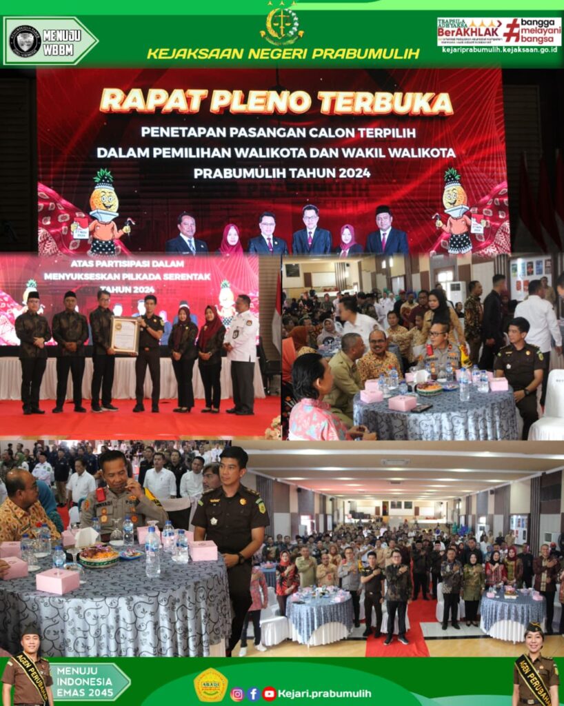 Bertempat di Gedung Kesenian Rumah Dinas Walikota Prabumulih, Kepala Seksi Intelijen Bapak Ajie Martha,S.H menghadiri Rapat Pleno Terbuka Penetapan Pasangan Calon Terpilih Dalam Pemilihan Walikota Prabumulih Tahun 2024.