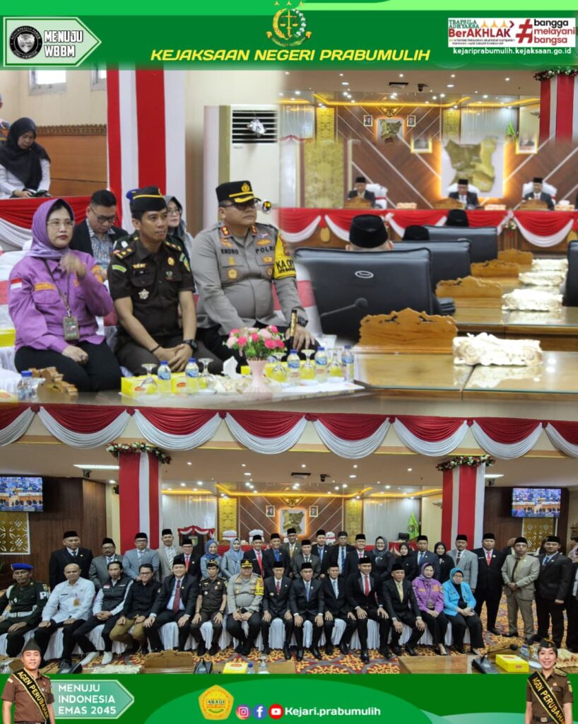 Bertempat di Ruang Rapat Paripurna DPRD Kota Prabumulih Kepala Kejaksaan Negeri Prabumulih, Bapak Khristiya Lutfiasandhi,S.H.,M.H yang diwakili Kepala Seksi Intelijen Bapak Ajie Martha,S.H menghadiri Rapat Paripurna Ke-X Masa Persidangan Ke-I DPRD Kota Prabumulih Tahun Rapat 2025 dengan Agenda Pengumuman Penetapan Calon Walikota dan Wakil Walikota Prabumulih Terpilih Dalam Pemilihan Umum Kepala Daerah Kota Prabumulih Tahun 2024.