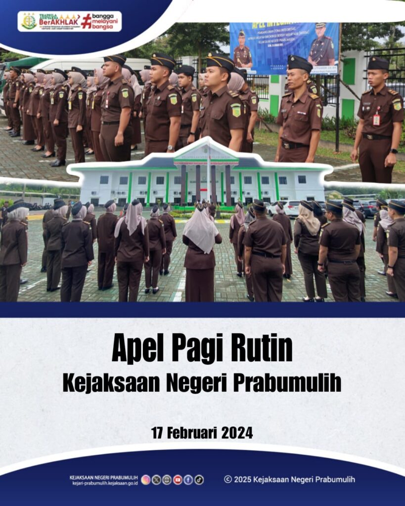 bertempat di Halaman Kantor Kejaksaan Negeri Prabumulih, Kepala Sub Bagian Pembinaan bapak IK Wirasa, S.H. memimpin Apel Rutin Senin Pagi yang diikuti oleh para Kasi, dab Pegawai di lingkungan Kejaksaan Negeri Prabumulih.