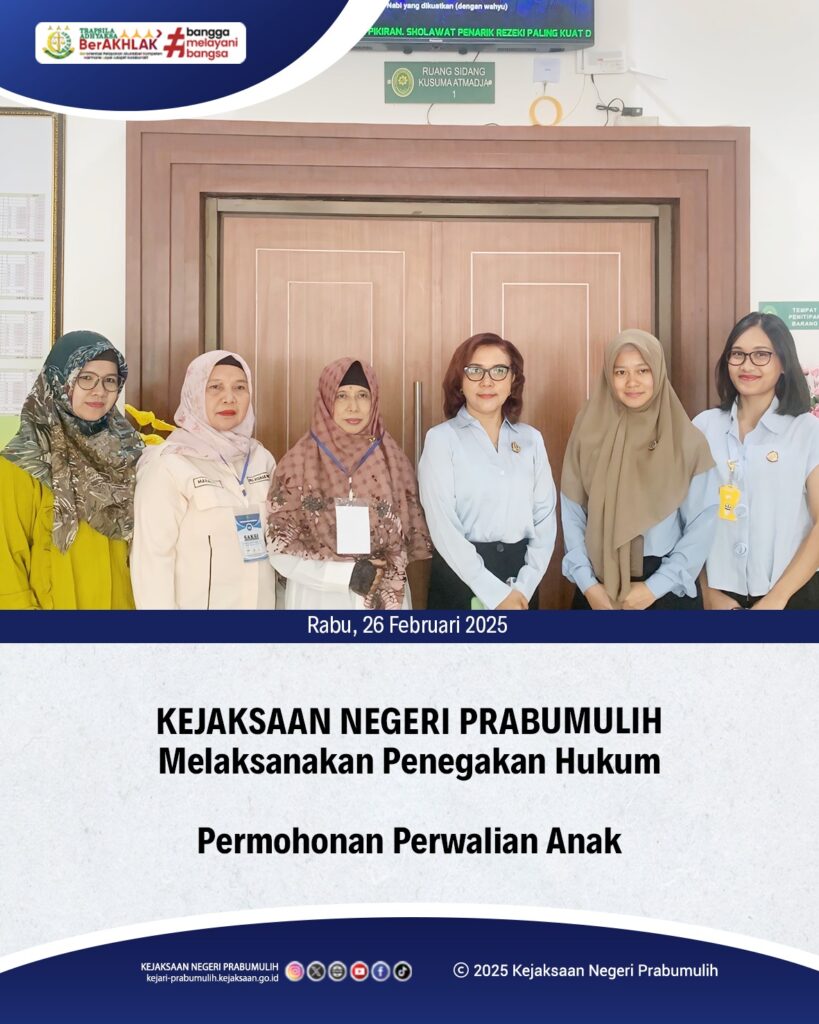 Bertempat di Pengadilan Agama Kota Prabumulih, Kepala Seksi Perdata dan Tata Usaha Negara Ibu Erwina Mea Dimatnusa, S.H., M.H, beserta Jaksa Pengacara Negara Vivin Marti Ningsih S.H.,M.H, dan Marie Dame C. Simanjuntak, S.H. Telah melaksanakan sidang permohonan perwalian anak dengan nomor perkara: 14/Pdt.P/2025/PA.Pbm. Agenda sidang yang dilaksanakan adalah pemeriksaan berkas dokumen.