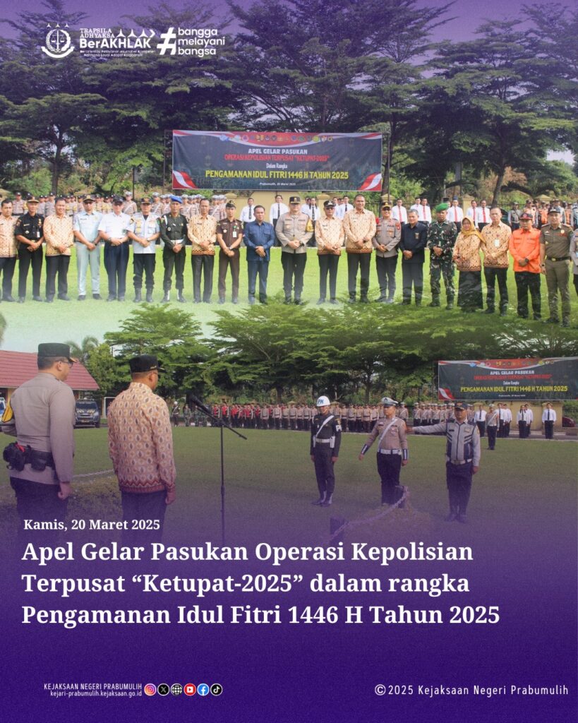 Bertempat Halaman Polres Prabumulih, Kajari Prabumulih yang diwakili Kepala Seksi Intelijen Bapak Ajie Martha,S.H. menghadiri Apel Gelar Pasukan dalam rangka Operasi Ketupat Musi Tahun 2025 Polres Prabumulih.