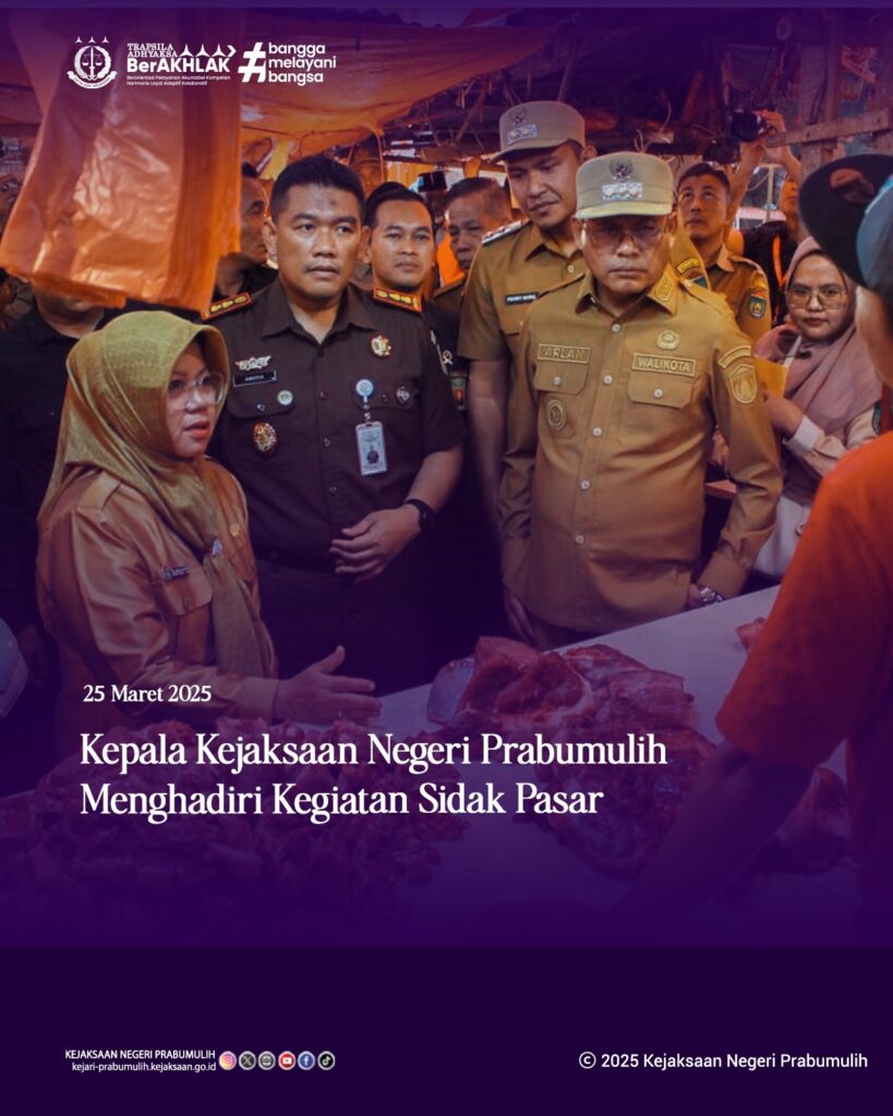 Kepala Kejaksaan Negeri Prabumulih Bapak Khristiya Lutfiasandhi, S.H., M.H., didampingi Kepala Seksi Intelijen Bapak Ajie Martha, S.H., mengikuti kegiatan Sidak Operasi Pasar dan Gudang Subdistributor yang diadakan oleh Pemerintah Kota Prabumulih di Pasar Tradisional Modern Prabumulih Jalan Jenderal Sudirman.