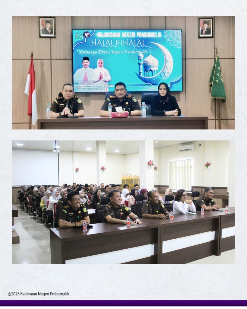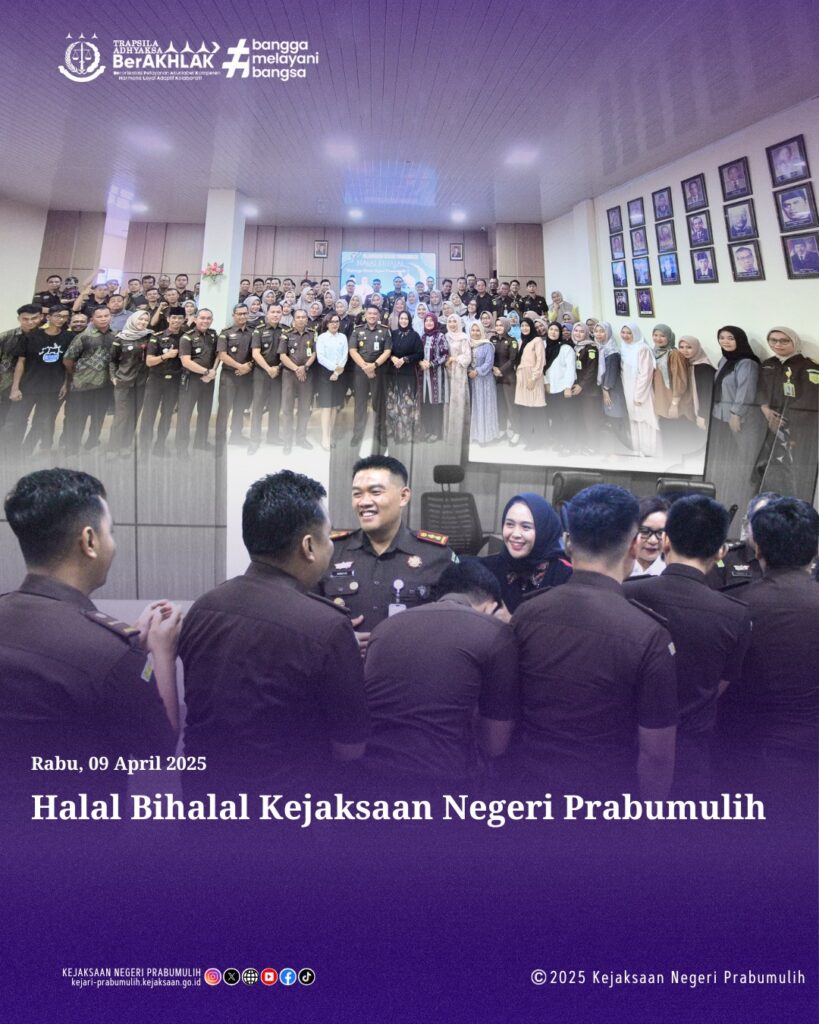 Bertempat di Aula Kantor Kejaksaan Negeri Prabumulih, Kepala Kejaksaan Negeri Prabumulih Bapak Khristiya Lutfiasandhi, S.H.,M.H. dan Ketua IAD Daerah Prabumulih Ny.Lis Khristiya melakukan Halal Bihalal bersama seluruh Pegawai Kejaksaan Negeri Prabumulih dan Anggota IAD Daerah Prabumulih.
