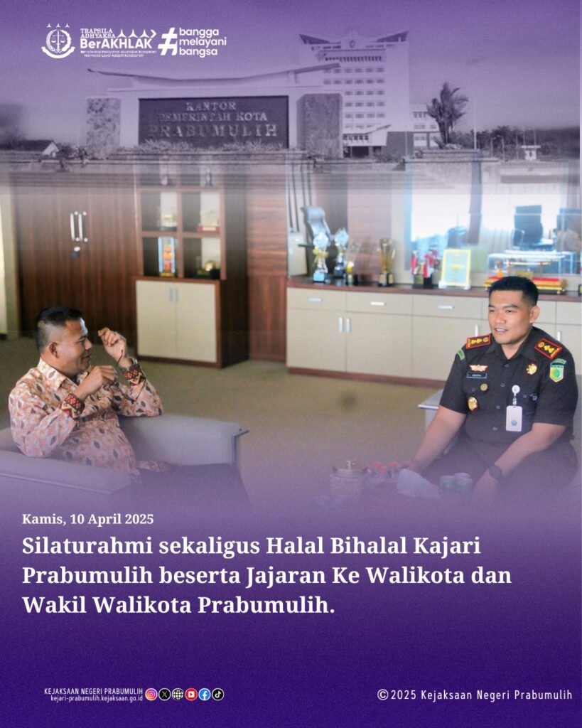 Kepala Kejaksaan Negeri Prabumulih Bapak Khristiya Lutfiasandhi, S.H.,M.H., didampingi para Kepala Seksi dan Kasubagbin melakukan Silaturahmi sekaligus Halal Bihalal ke Walikota dan Wakil Walikota Prabumulih.