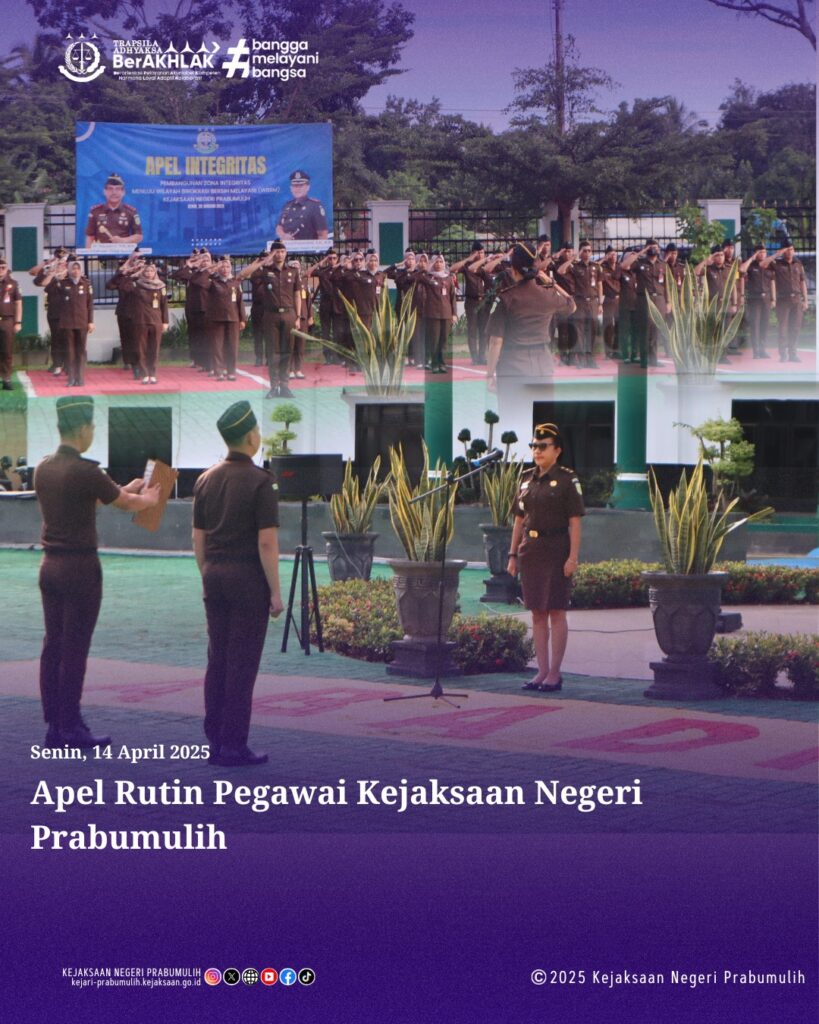 Bertempat di Halaman Kantor Kejaksaan Negeri Prabumulih, Kepala Seksi Perdata dan Tata Usaha Negara Ibu Erwina Mea Dimatnusa, S.H.,M.H., memimpin Apel Rutin Senin Pagi yang diikuti oleh para Kasi dan Pegawai di lingkungan Kejaksaan Negeri Prabumulih.