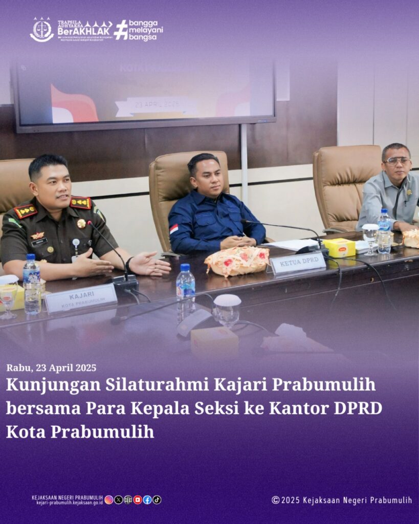 Kepala Kejaksaan Negeri Prabumulih Bapak Khristiya Lutfiasandhi, S.H.,M.H., bersama Para Kepala Seksi pada Kejaksaan Negeri Prabumulih melakukan Kunjungan Silaturahmi ke Kantor DPRD Kota Prabumulih.