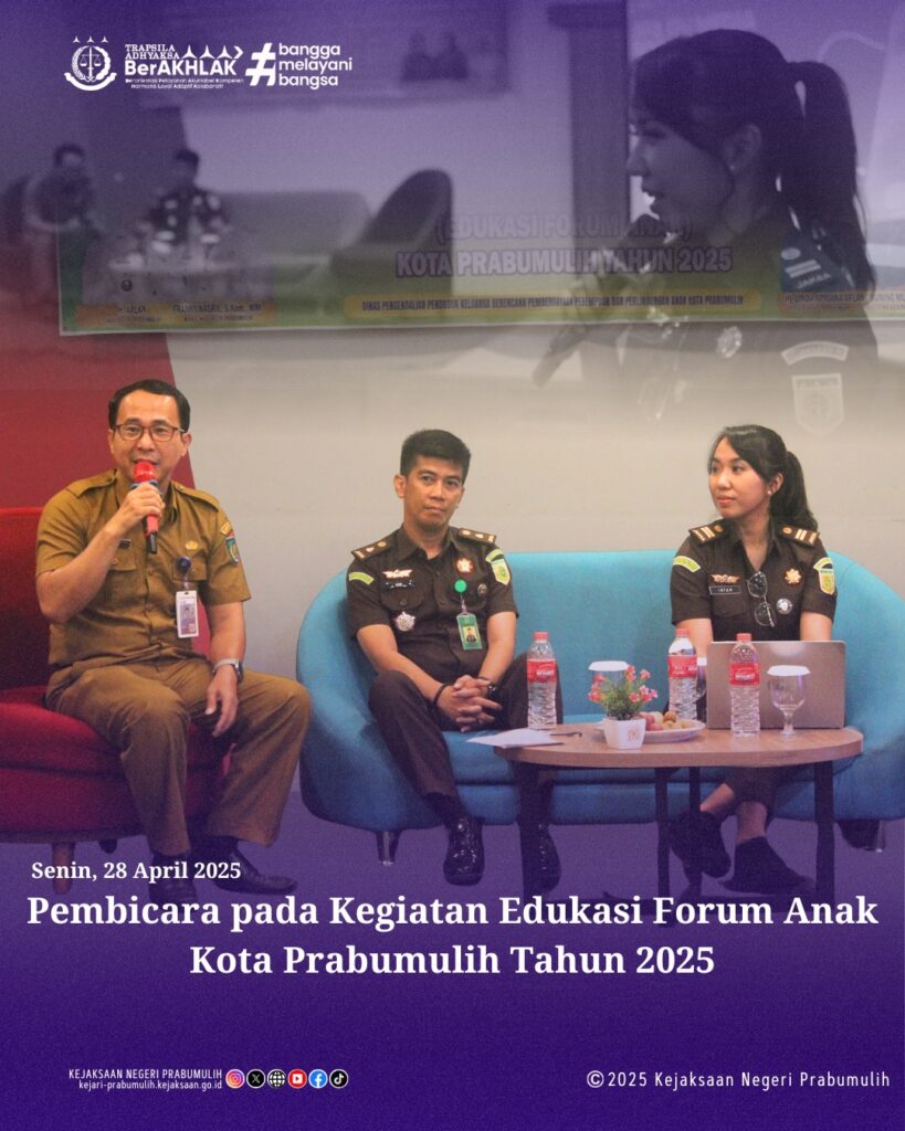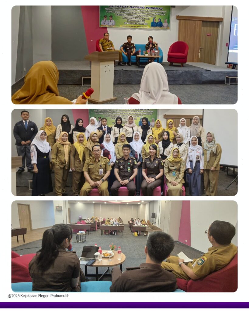 Bertempat di Fave Hotel Kota Prabumulih, Kepala Seksi Intelijen Bapak Ajie Martha, S.H., bersama Plh.Kasubsi I Intelijen Ibu Intan Magdalena, S.H., menjadi Pembicara pada Kegiatan Pengumpulan, Pengolahan Analisis dan Penyajian Data Gender dan Anak dalam Kelembagaan data di Tingkat Daerah Kabupaten/Kota Sub Kegiatan Penyediaan data Gender dan Anak di Kewenangan Kabupaten/Kota (Edukasi Forum Anak) Kota Prabumulih Tahun 2025 yang dilaksanakan oleh Dinas PPKBPPPA Kota Prabumulih.