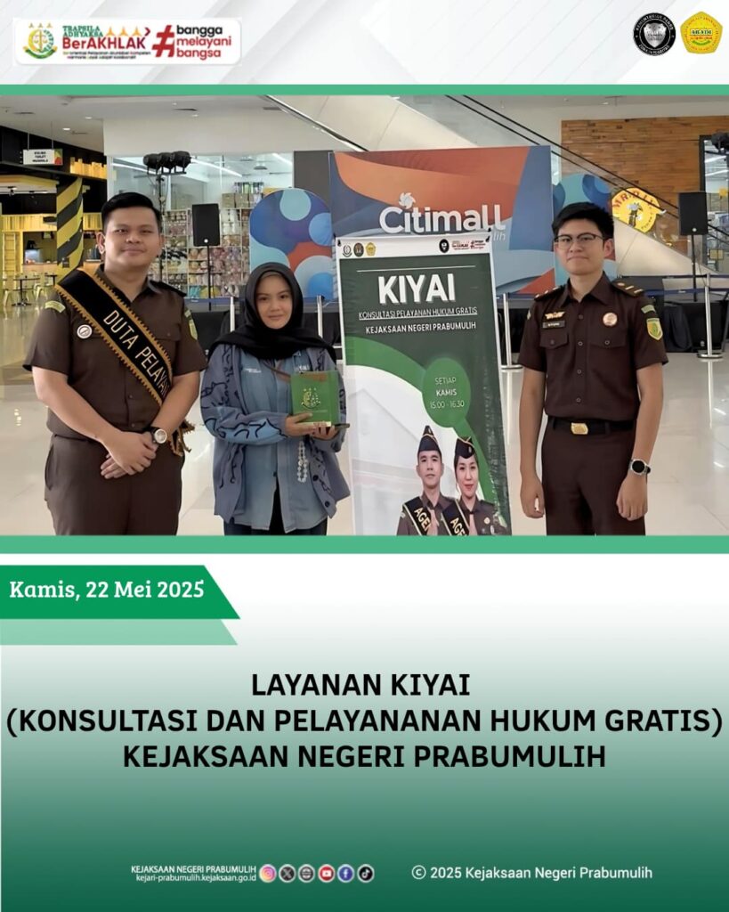 Bertempat di Citimall Kota Prabumulih, Jaksa pada Kejaksaan Negeri Prabumulih melakukan Pelayanan KIYAI (Konsultasi dan Pelayanan Hukum Gratis).