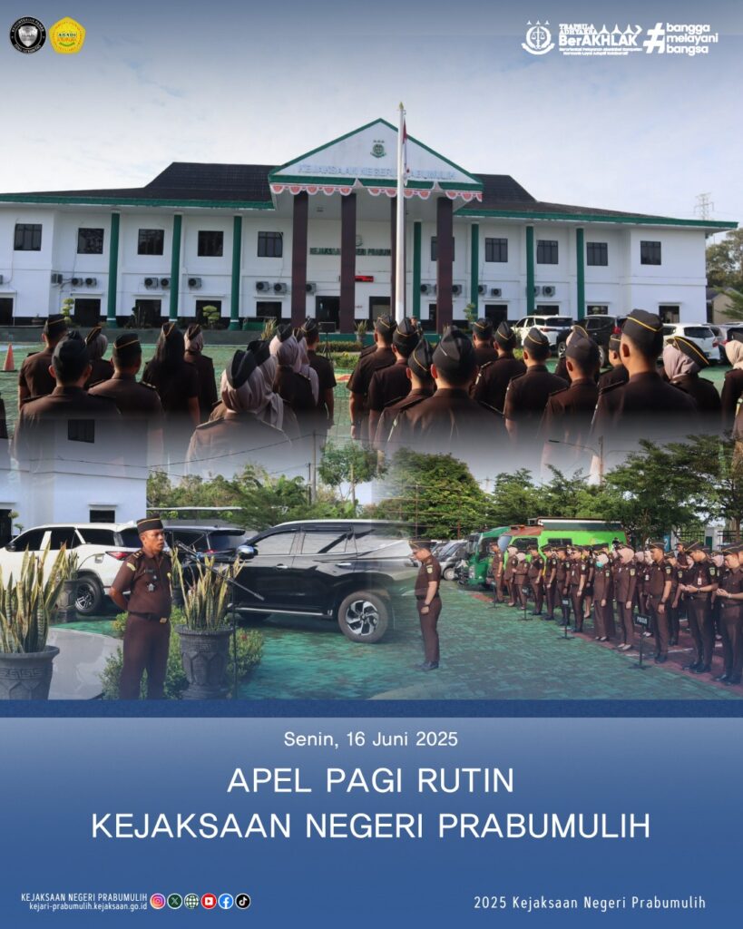 Bertempat di halaman Kantor Kejaksaan Negeri Prabumulih, Kepala Sub Bagian Pembinaan Bapak I.K Wirasa, S.H., memimpin Apel Rutin Senin Pagi yang diikuti oleh Para Kasi dan Pegawai di lingkungan Kejaksaan Negeri Prabumulih.