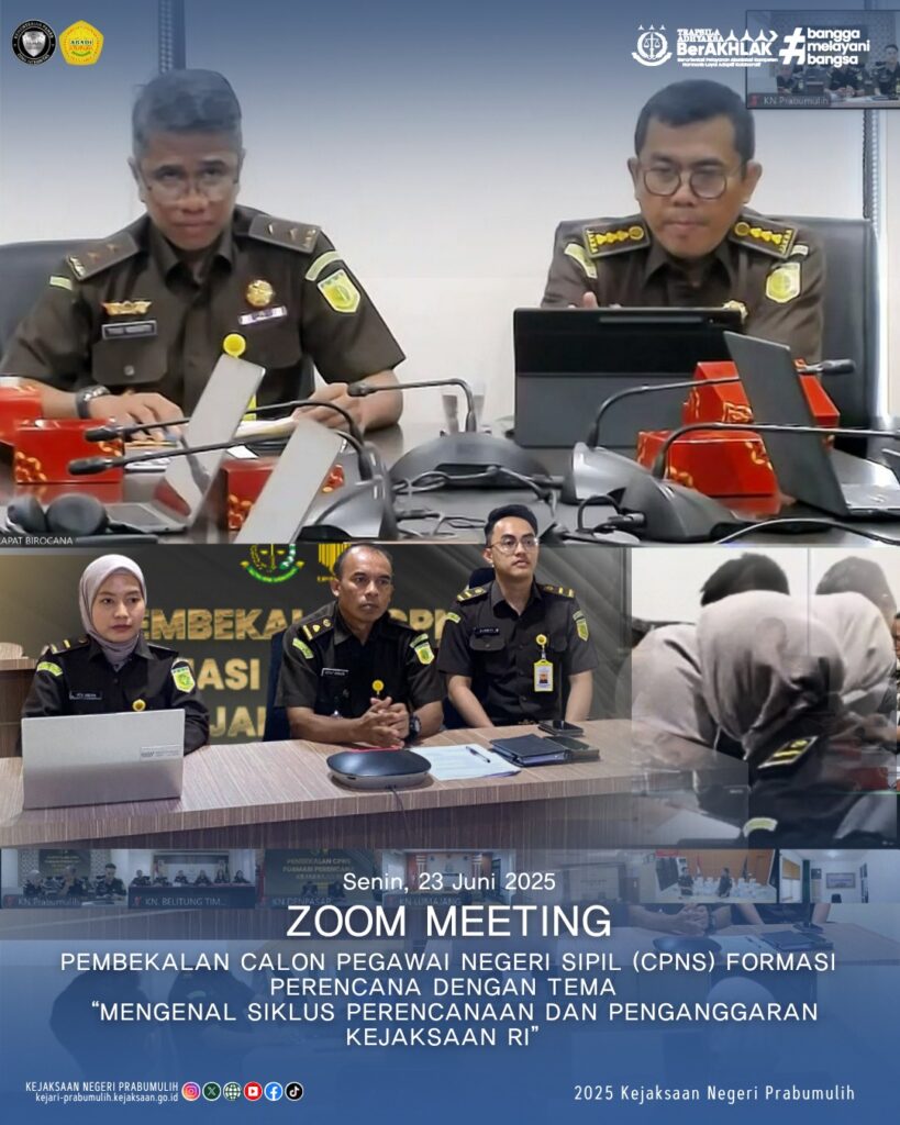 Kepala Sub Bagian Pembinaan Bapak I.K Wirasa, S.H., bersama Calon Pegawai Negeri Sipil (CPNS) formasi Perencana, mengikuti kegiatan Pembekalan bagi Calon Pegawai Negeri Sipil (CPNS) melalui Zoom Meeting yang membahas “Mengenal Siklus Perencanaan dan Penganggaran Kejaksaan RI”.