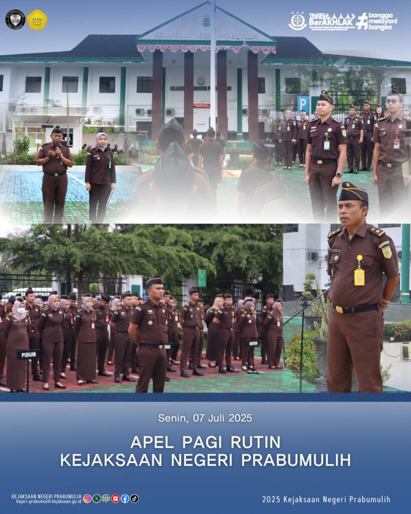 Bertempat di halaman Kantor Kepala Sub Bagian Pembinaan Bapak I.K Wirasa, S.H., memimpin Apel Rutin Senin Pagi yang diikuti oleh Para Kasi dan Pegawai di lingkungan Kejaksaan Negeri Prabumulih.