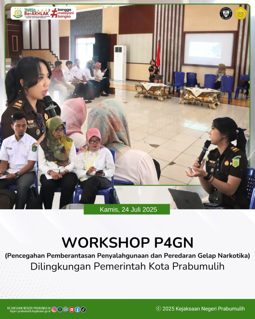 Bertempat di Gedung Kesenian Rumah Dinas Walikota Prabumulih Plh.Kasubsi I Intelijen Ibu Intan Magdalena, S.H., menjadi Narasumber pada Kegiatan Workshop P4GN (Pencegahan Pemberantasan Penyalahgunaan dan Peredaran Gelap Narkotika) yang dilaksanakan oleh BNN Kota Prabumulih.