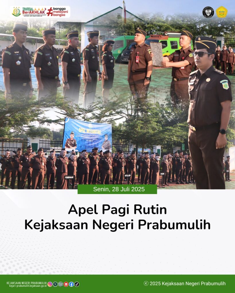 Bertempat di halaman Kantor Kejaksaan Negeri Prabumulih Kepala Seksi Pidana Khusus Bapak Safe’i, S.H.,M.H., memimpin Apel Rutin Senin Pagi yang diikuti oleh Para Kasi dan Pegawai di lingkungan Kejaksaan Negeri Prabumulih.