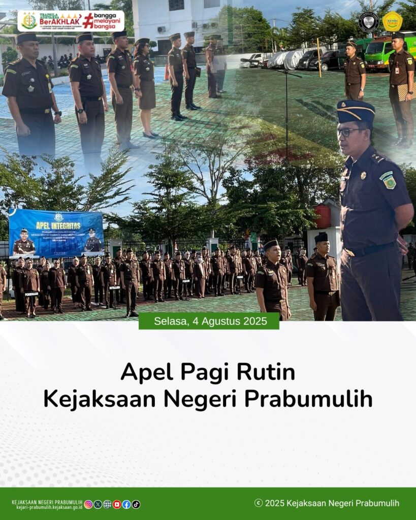 Bertempat di halaman Kantor Kejaksaan Negeri Prabumulih Kepala Seksi Pidana Khusus Bapak Safe’i, S.H.,M.H., memimpin Apel Rutin Senin Pagi yang diikuti oleh Para Kasi dan Pegawai di lingkungan Kejaksaan Negeri Prabumulih.