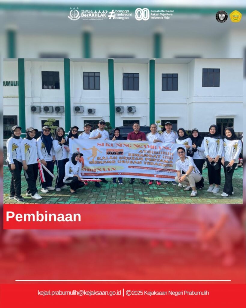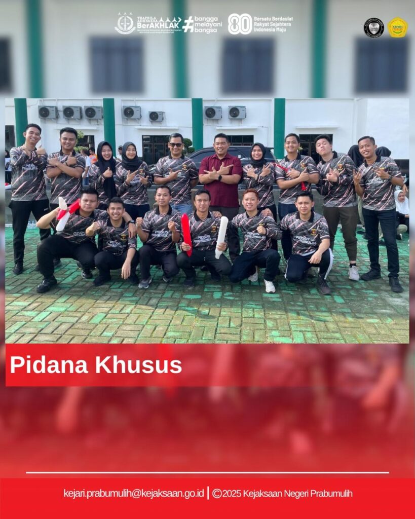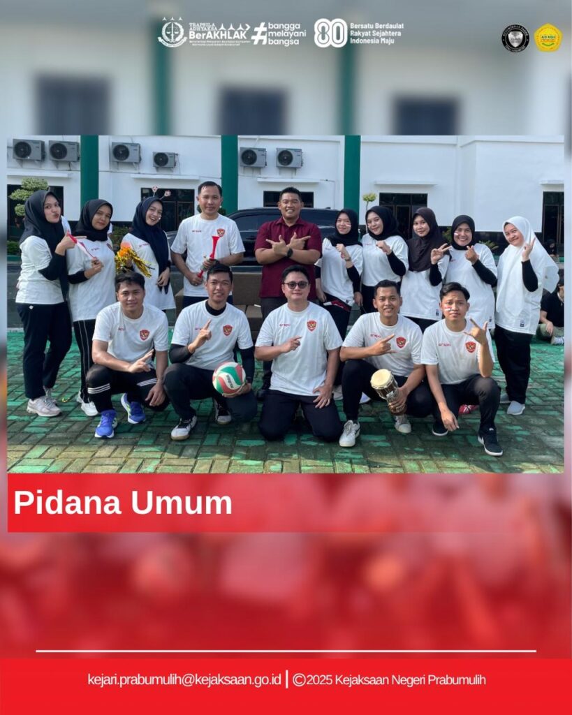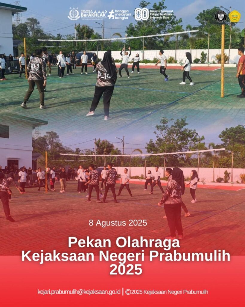 Bertempat di Lapangan Kejaksaan Negeri Prabumulih telah dilaksanakan kegiatan Pekan Olahraga Kejaksaan Negeri Prabumulih Tahun 2025. Kegiatan tersebut dihadiri oleh Kepala Kejaksaan Negeri Prabumulih bapak Khristiya Lutfiashandi,S.H., M.H., beserta Para Kasi dan Kasubagbin serta diikuti oleh seluruh Pegawa Kejaksaan Negeri Prabumulih.