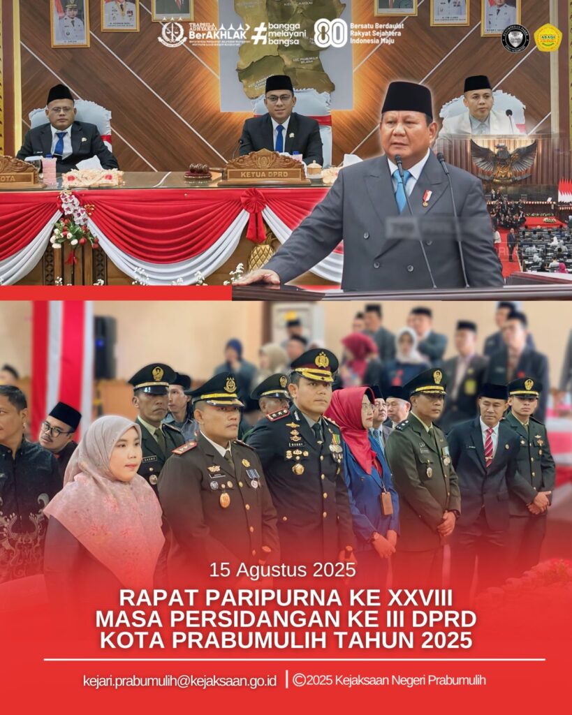 Bertempat di Ruang Rapat Paripurna DPRD Kota Prabumulih Bapak Khristiya Lutfiasandhi, S.H.,M.H., menghadiri Rapat Paripurna ke XXVIII Masa Persidangan ke III DPRD Kota Prabumulih Tahun 2025.