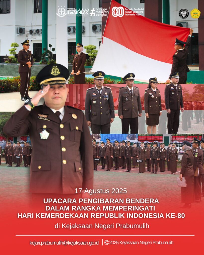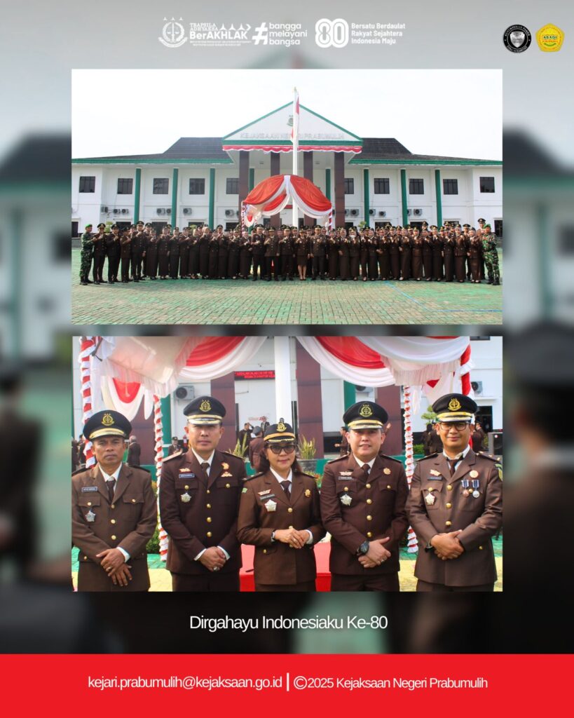 Bertempat di Halaman Kantor Kejaksaan Negeri Prabumulih Dalam Rangka Memperingati HUT Ke – 80 Kemerdekaan Republik Indonesia Kejaksaan Negeri Prabumulih melakukan Upacara Pengibaran Bendera Merah Putih.