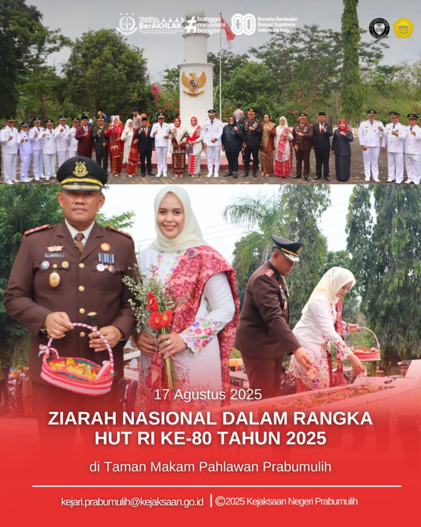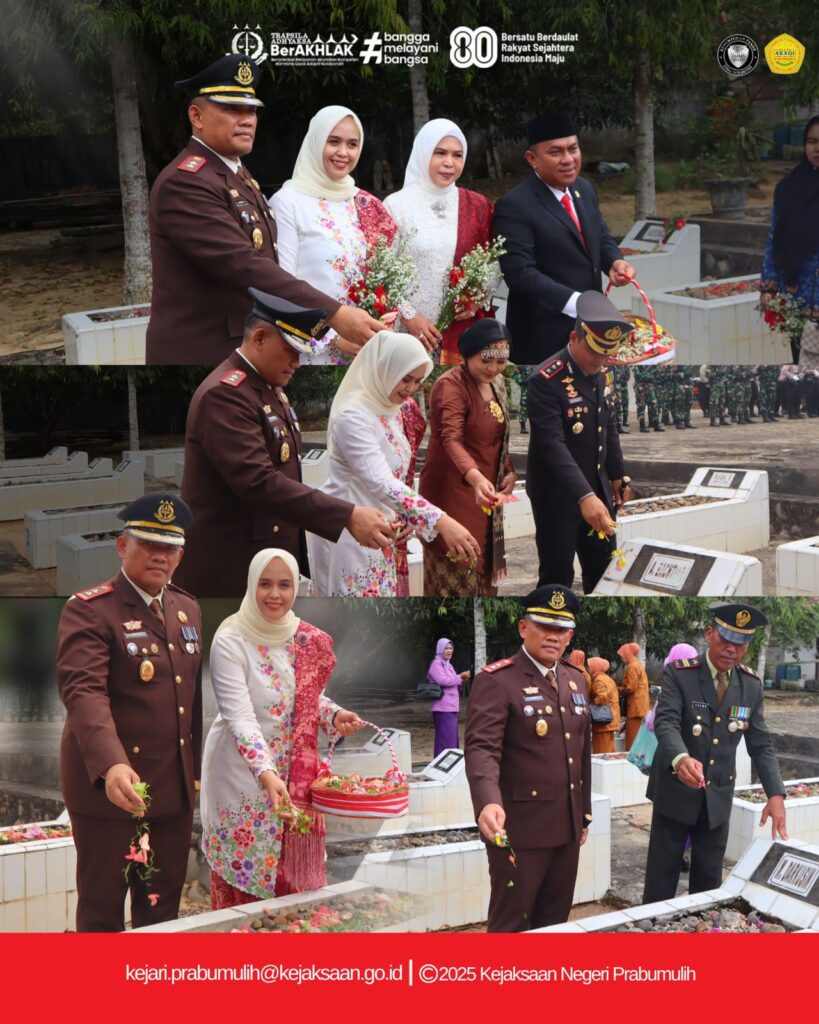 Bertempat di Taman Makam Pahlawan Kota Prabumulih, Kepala Kejaksaan Negeri Prabumulih Bapak Khristiya Lutfiasandhi, S.H., M.H., dan Ketua IAD Daerah Prabumulih Ny. Lis Khristiya mengikuti Ziarah dalam rangka memperingati Hari Ulang Tahun ke-80 Kemerdekaan Republik Indonesia.