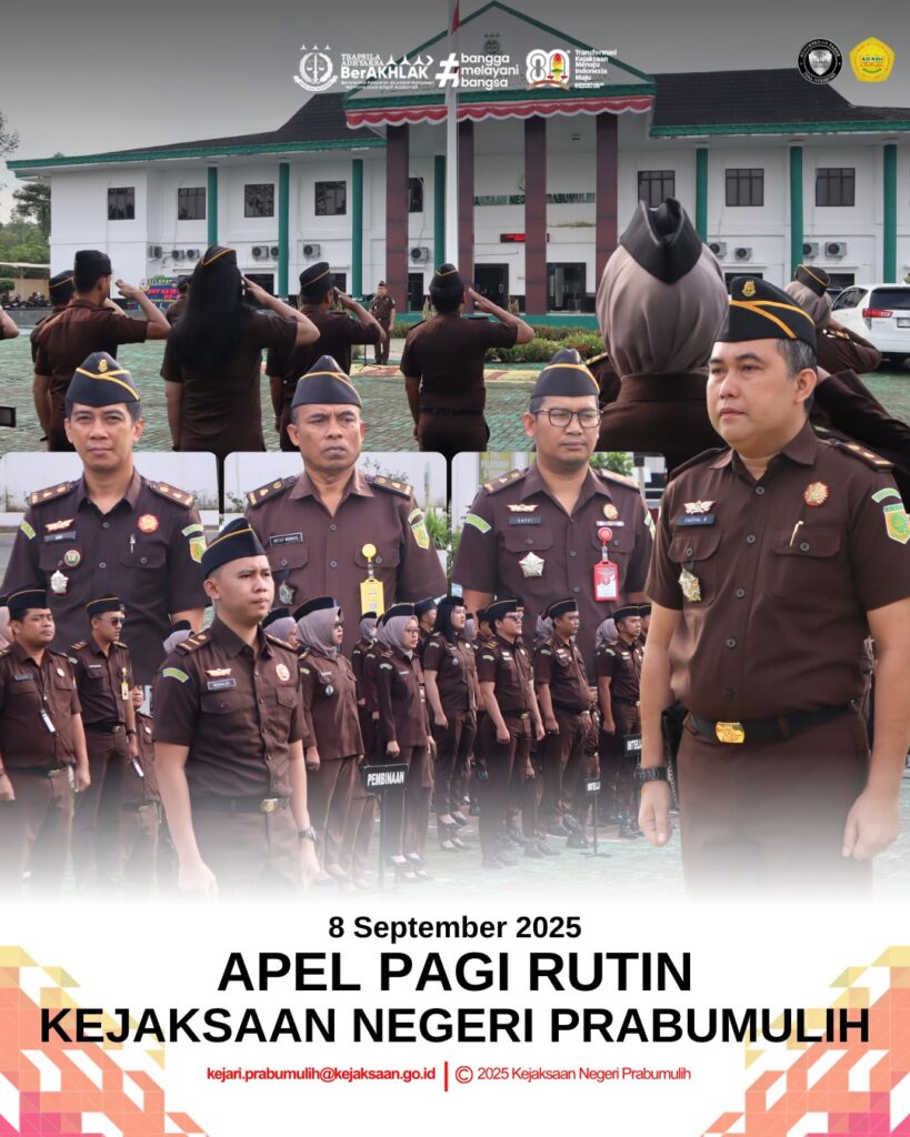 Bertempat di halaman Kantor Kejaksaan Negeri Prabumulih Kepala Seksi PAPBB Bapak Faisyal Basni, S.H.,M.H., memimpin Apel Rutin Senin Pagi yang diikuti oleh Para Kasi dan Pegawai di lingkungan Kejaksaan Negeri Prabumulih.