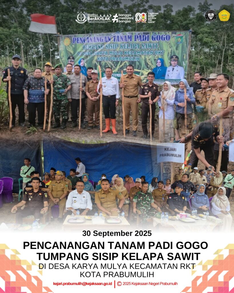Bertempat di Desa Karya Mulya unit 9 Kecamatan RKT Kota Prabumulih Kepala Seksi Intelijen Bapak Ajie Martha, S.H., menghadiri Pencanangan Tanam Padi Gogo Tumpang Sisip Kelapa Sawit di Desa Karya Mulya Kecamatan RKT Kota Prabumulih.