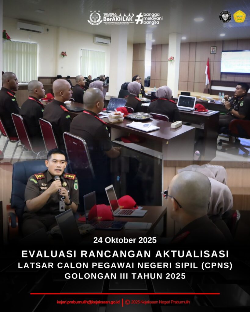 Kejaksaan Negeri Prabumulih Kepala Kejaksaan Negeri Prabumulih Bapak Khristiya Lutfiasandhi, S.H.,M.H., melakukan pengujian pada Kegiatan Evaluasi Rancangan Aktualisasi Latsar CPNS Golongan III Tahun 2025.