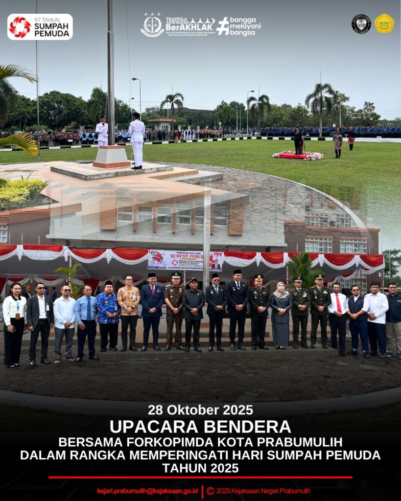 Bertempat di Halaman Kantor Pemerintah Kota Prabumulih, Kepala Seksi Tindak Pidana Umum Bapak Mirsyah Rizal, S.H.,M.H., mengikuti Upacara Bendera bersama Forkopimda Kota Prabumulih dalam rangka memperingati Hari Sumpah Pemuda Tahun 2025.