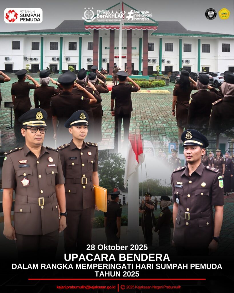 Bertempat di Halaman Kantor Kejaksaan Negeri Prabumulih Kepala Seksi Tindak Pidana Khusus bertindak sebagai Inspektur Upacara pada Upacara Bendera dalam rangka memperingati hari Sumpah Pemuda Tahun 2025 yang diikuti para Kepala Seksi,Kasubag Pembinaan dan Pegawai pada Kejaksaan Negeri Prabumulih.