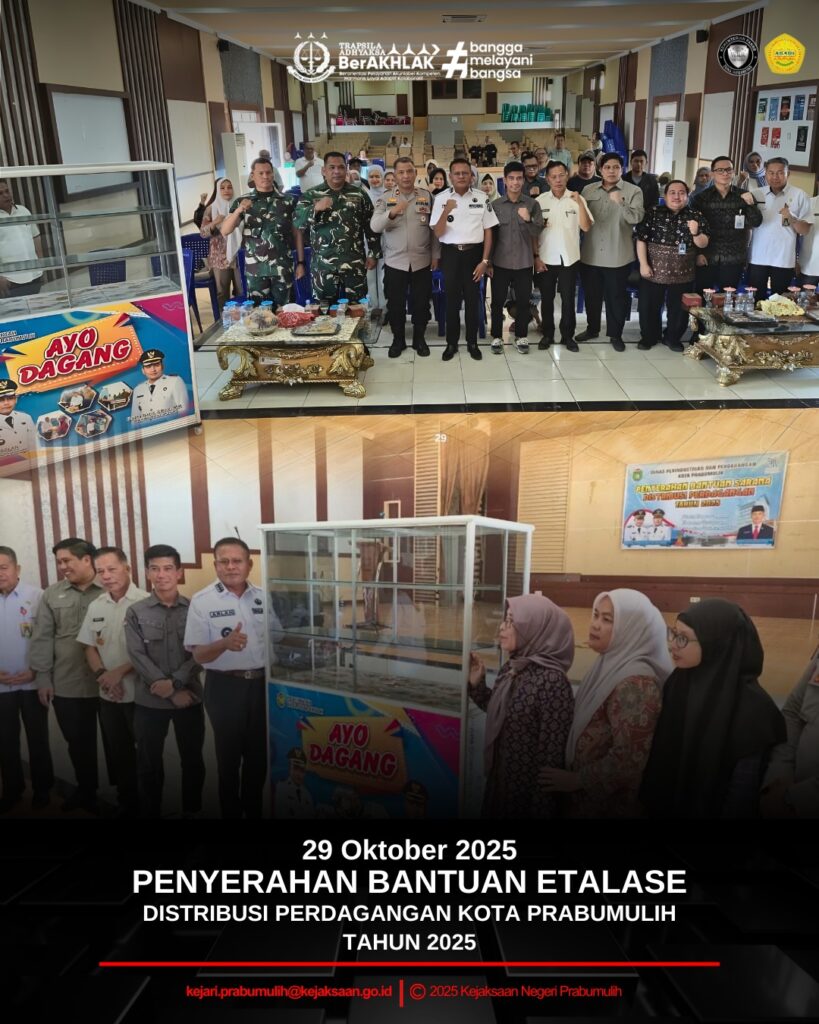 Bertempat di Gedung Kesenian Rumah Dinas Walikota Prabumulih Kepala Seksi Intelijen Bapak Ajie Martha, S.H., menghadiri Penyerahan Bantuan Etalase Sarana Distribusi Perdagangan Kota Prabumulih Tahun 2025.