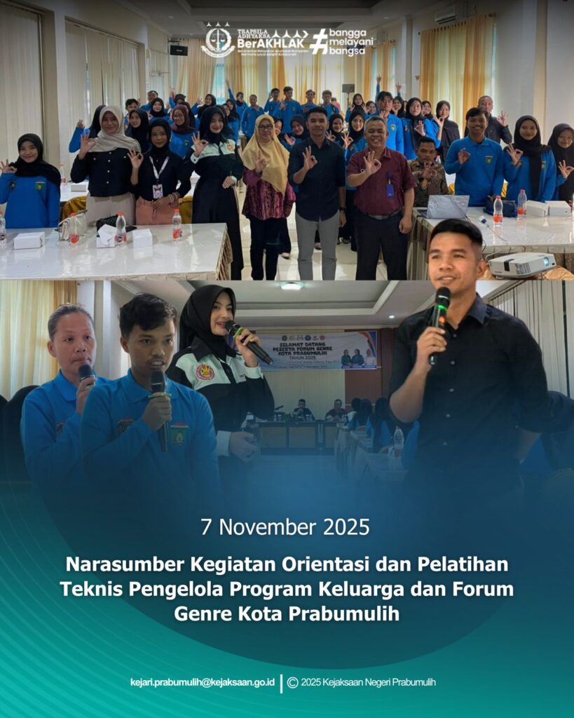 Bertempat di Hotel Grand Nikita Kota Prabumulih, Jaksa Fungsional Seksi Intelijen Bapak Rozza Syaputra, S.H. hadir sebagai Pembicara pada Kegiatan Pelatihan Teknis Pengelola Program Keungan Keluarga dengan Forum GenRe Kota Prabumulih Tahun 2025.