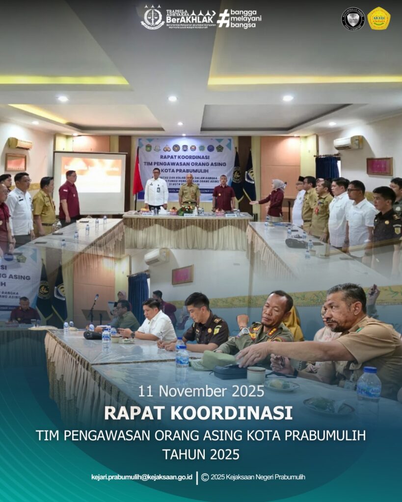Bertempat di Hotel Gran Nikita Prabumulih Kepala Seksi Intelijen Bapak Ajie Martha, S.H., menghadiri Rapat Koordinasi Tim Pengawasan Orang Asing Kota Prabumulih yang dilaksanakan Kantor Imigrasi Kelas I TPI Palembang Tahun Anggaran 2025.