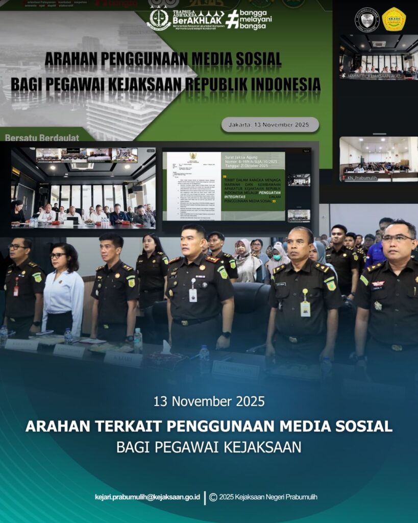 Bertempat di Aula Kejaksaan Negeri Prabumulih seluruh Pegawai Kejaksaan Negeri Prabumulih mengikuti Kegiatan Arahan terkait Penggunaan Media Sosial bagi Pegawai Kejaksaan.