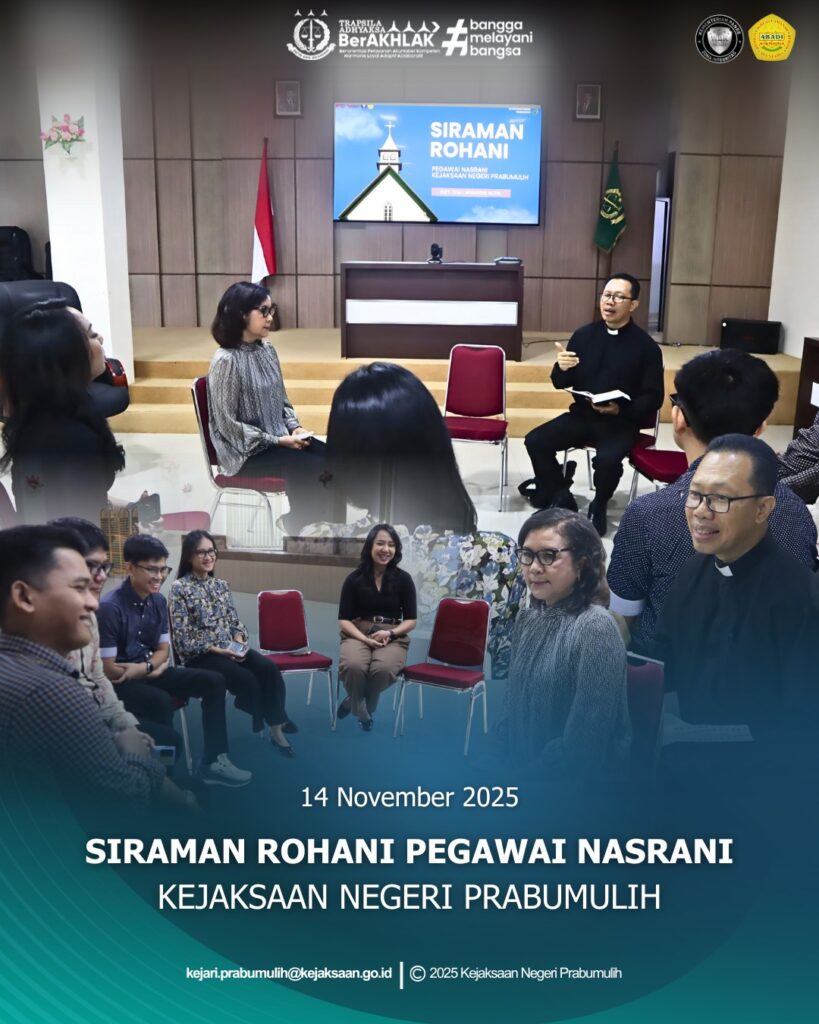 Bertempat di Aula Kantor Kejaksaan Negeri Prabumulih, Kepala Seksi Perdata dan Tata Usaha Negara Ibu Erwina Mea Dimatnusa, S.H., M.H., melakukan Siraman Rohani bersama para Pegawai Nasrani di Kejaksaan Negeri Prabumulih.