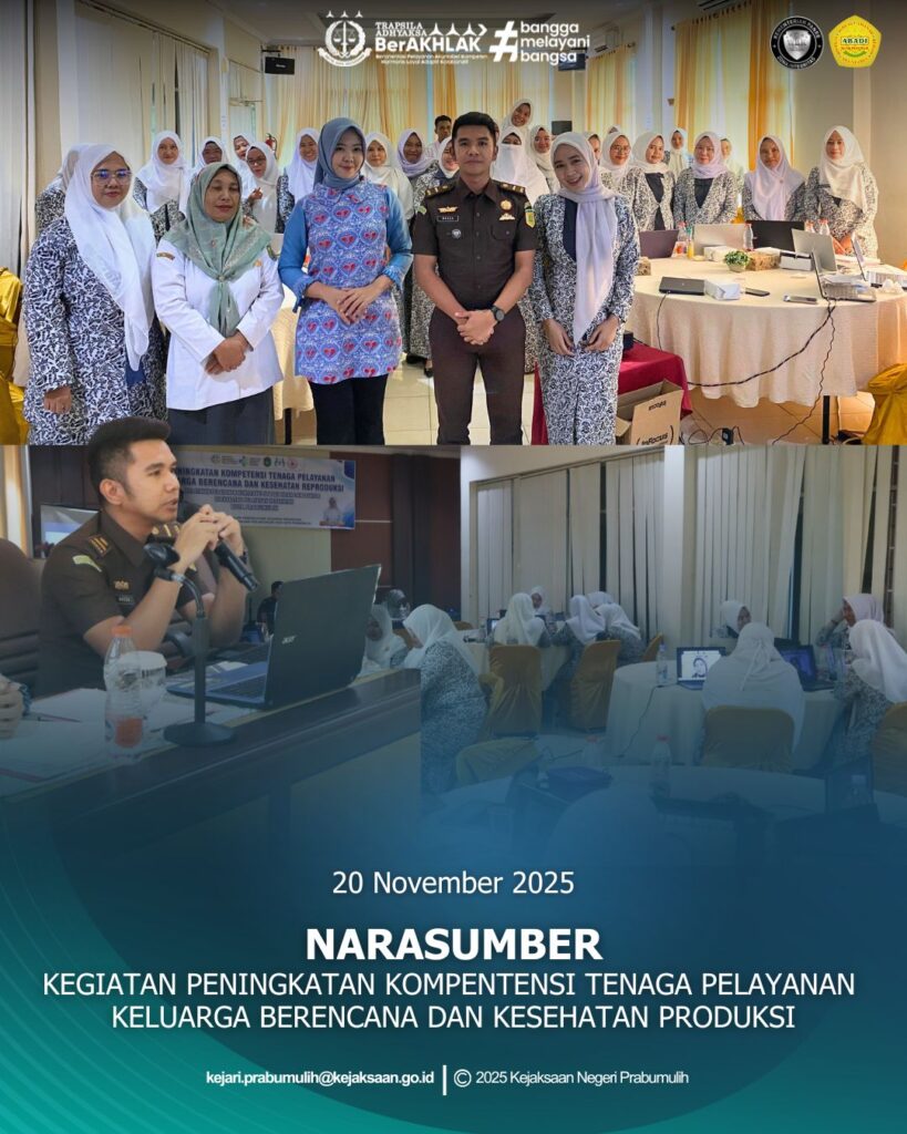 Bertempat di Hotel Grand Nikita Kota Prabumulih, Jaksa Fungsional Seksi Intelijen Bapak Rozza Syaputra, S.H. hadir sebagai Pembicara pada kegiatan peningkatan kompentensi tenaga pelayanan keluarga berencana dan kesehatan produksi.