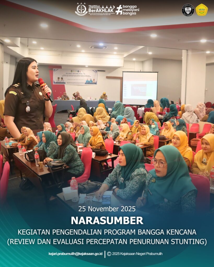 Bertempat di Fave Hotel Prabumulih Kasubsi II Seksi Intelijen Ibu Meylda Pegasari, S.H., menjadi Narasumber pada Kegiatan Pengendalian Program Bangga Kencana (Review Dan Evaluasi Percepatan Penurunan Stunting) yang dilaksanakan Dinas Pengendalian Penduduk Keluarga Berencana Pemberdayaan Perempuan dan Perlindungan Anak Kota Prabumulih.