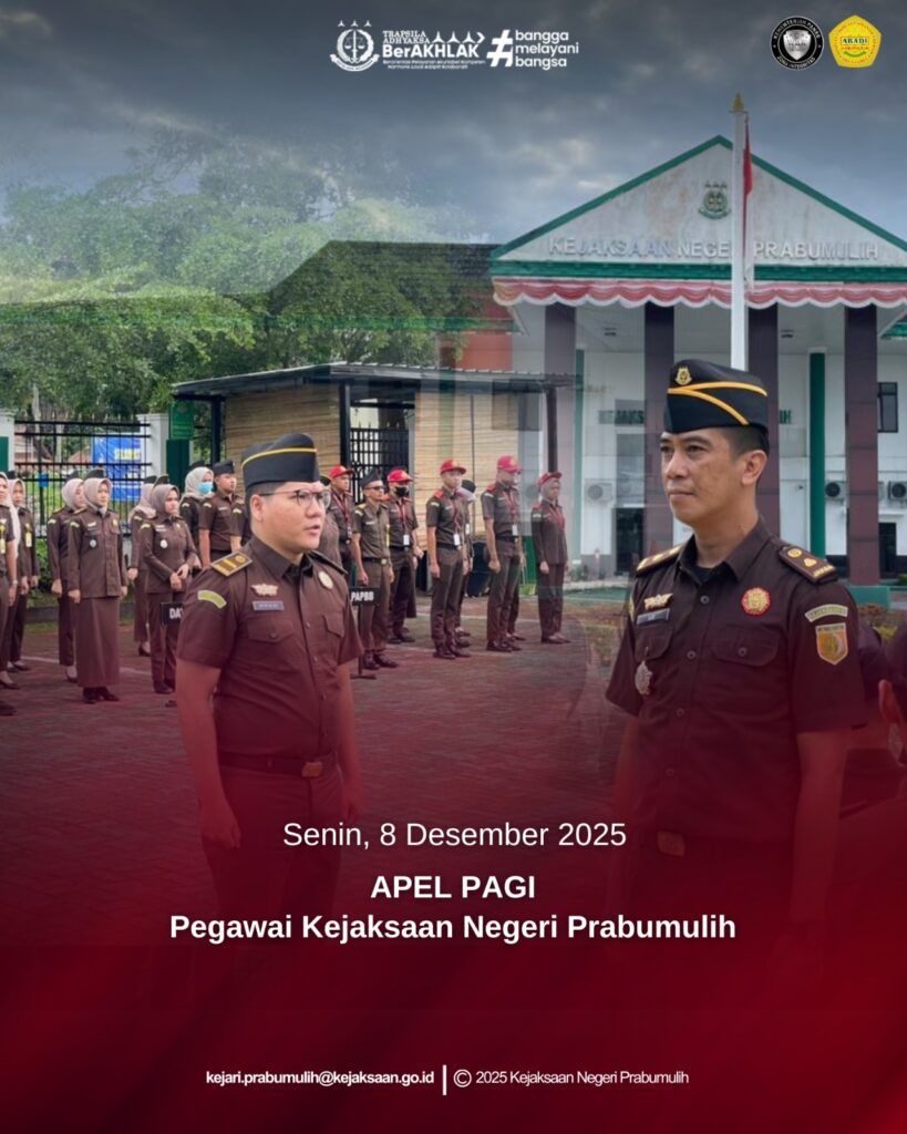 Bertempat di halaman Kantor Kejaksaan Negeri Prabumulih Kepala Seksi Intelijen Bapak Ajie Martha, S.H. memimpin Apel Rutin Senin Pagi yang diikuti oleh Para Kasi dan Pegawai di lingkungan Kejaksaan Negeri Prabumulih.