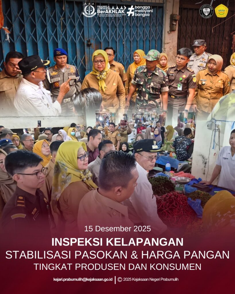 Bertempat di Pasar Tradisional Modern 2 (PTM) Prabumulih, Jaksa pada Seksi Intelijen Bapak Hendro Adi Syahputra, S.H., mengikuti Inspeksi mendadak Stabilisasi Pasokan dan Harga Pangan Tingkat Produsen dan Konsumen di Kota Prabumulih Tahun 2025 dalam Rangka Menjelang Hari Natal dan Tahun Baru.
